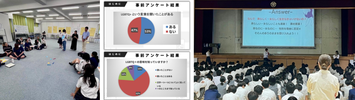中学校にて約350人に講演をおこない、学習塾や本校で計約50人にワークショップをおこなった。講演には、企業の方にご提供いただいた漫画を使用させていただいた。ワークショップでは「当事者との向き合い方」に関するディスカッションや参加型クイズを用い、中学生にもわかりやすい工夫をした。事前・事後アンケートでは100%の理解度の向上が認められた。 - 今後の展望