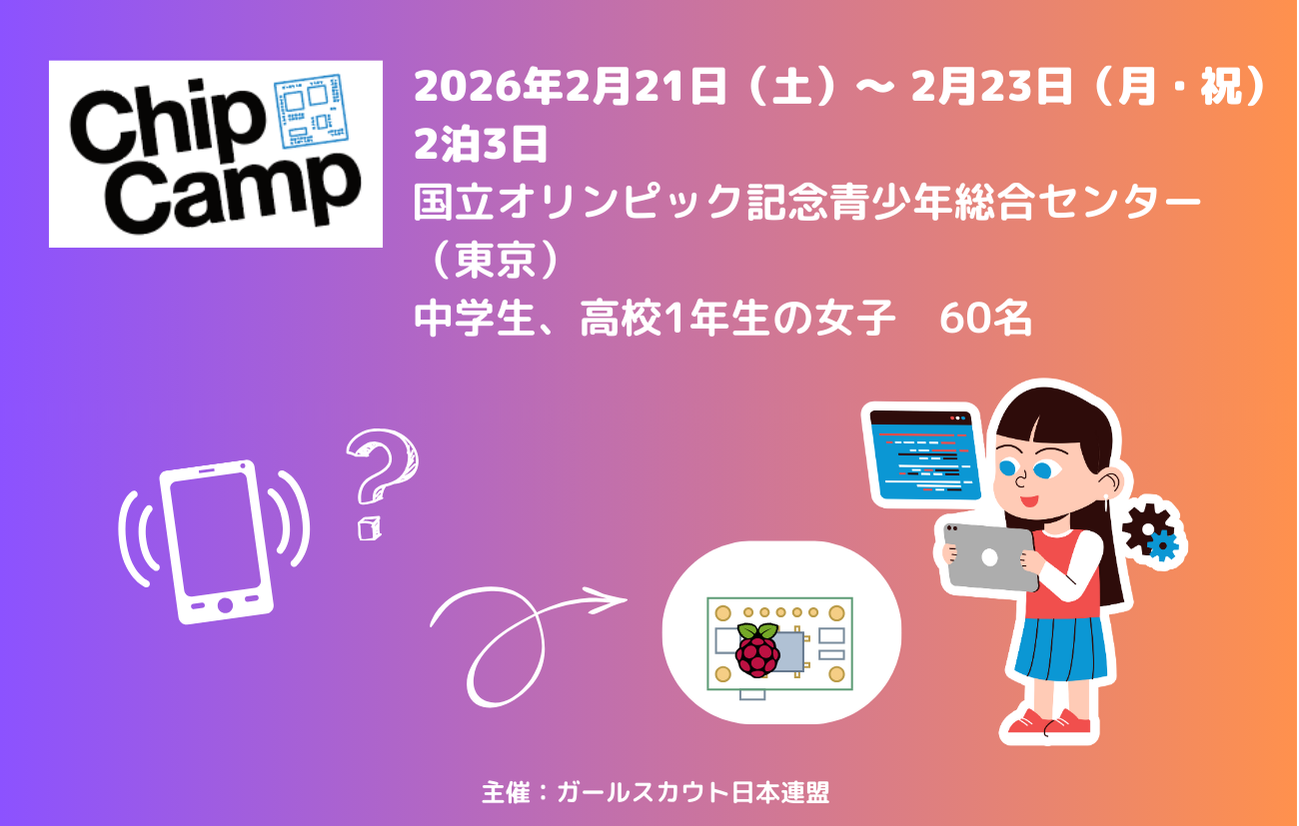 公益社団法人ガールスカウト日本連盟は、マイクロン財団・マイクロンメモリ ジャパンのご支援、広島大学のご協力をいただき、女子の可能性を広げるSTEAM教育として、Chip Camp*を開催します。