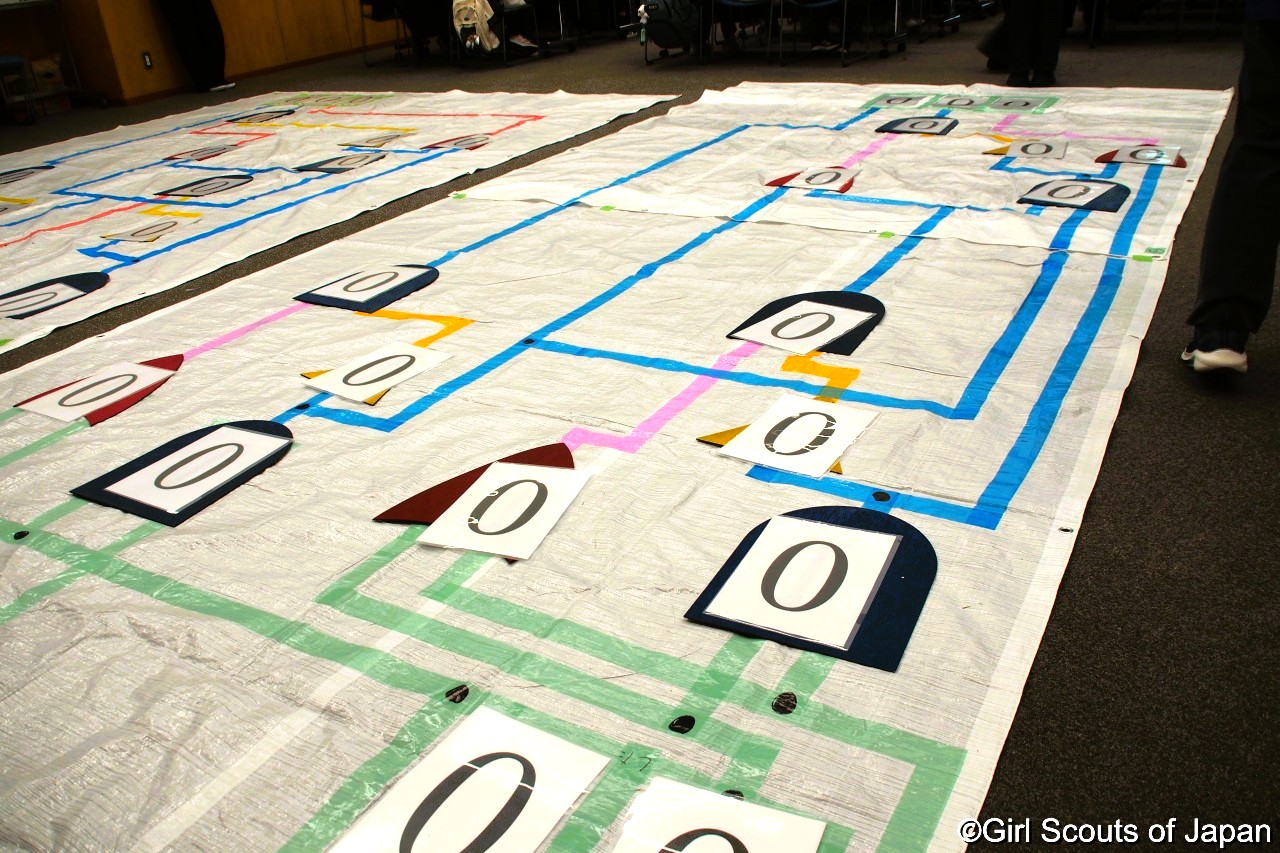 参加者はグループに分かれて床の上の回路に立ち、一人ひとりが「NOT」「OR」「AND」の役割をもちます。