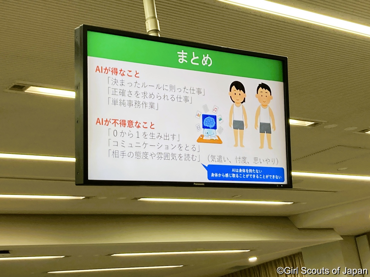 今回の運営に参加したユース年代のガールスカウトからは「参加者と一緒に体験ができてよかった。自分の地域に持ち帰って学んだことを伝えたい。」「新しいことをたくさん学べた」「教育課程の学生の皆さんの運営に学びが多かった。エンジニアの皆さんのお話も学びになった」と充実した様子でした。